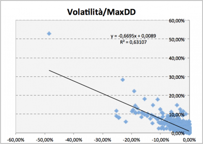 Per essere utile ai miei lettori, che ringrazio per la fedeltà nella lettura dei miei pensieri settimana dopo settimana, ho analizzato dei parametri per capire se ci fossero delle correlazioni interessanti per stimare l'ampiezza delle perdite (drawdown) dei fondi in base alle proprie caratteristiche quantitative.